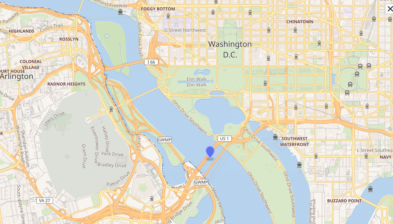 The Long Bridge carries railroad trains. The Charles R Fenwick Bridge carries metro trains. There’s a southbound span called the George Mason Memorial Bridge, and that one is for cars but also includes a side path for pedestrians and cyclists. There’s also a two-way span called the Rochambeau Bridge.